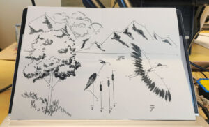 Les points reliés esquissent une belle histoire. Celle d’un lac entouré de montagnes, d’un oiseau qui prend son envol et d’un.e pilote de parapente qui survole la beauté.