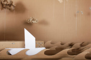 Réponse : Un Poisson Pilote interroge le carton, ce matériau dont les qualités esthétiques sont souvent peu exploitées ou camouflées par des couleurs. Il devient décor pour un film d’animation en stop motion.