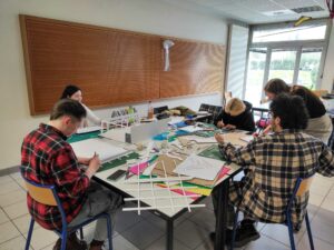 Les apprenant.e.s travaillent sur 3 maquettes et soutiennent publiquement leur projet. Les maquettes sont soumises au vote des futurs usagers. Je dessine le projet final en faisant la synthèse des deux projets sélectionnés lors des votes, choisis les matériaux avec les fabricants et de réalise les plans de fabrication.